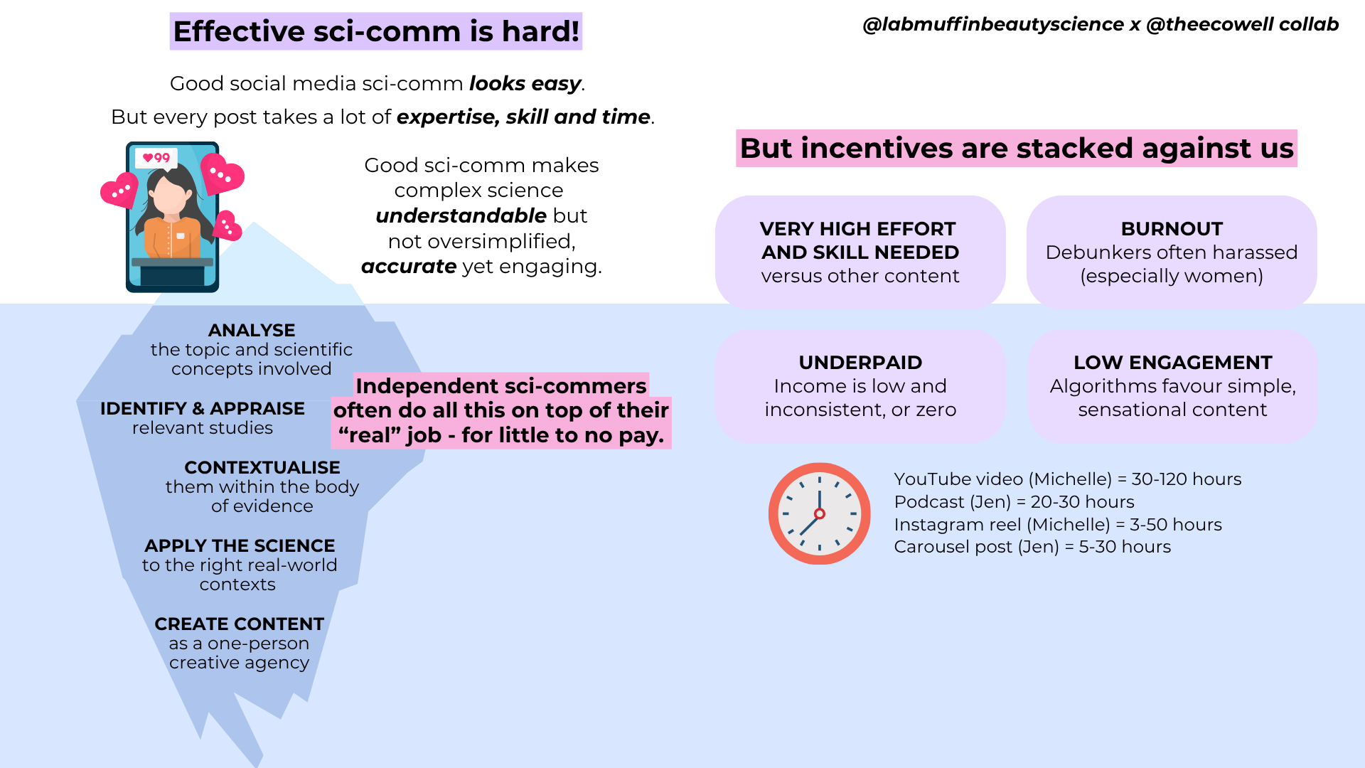 While watching a medfluencer do an ad for a “detox meal kit”, after the initial feeling of “wow this is horrifying”, I couldn’t help but think - science communicators who actually care about accuracy could make so much money if we just … didn’t… care? There lies the problem. Misinformation is profitable, truthfulness and moral scruples… isn’t.